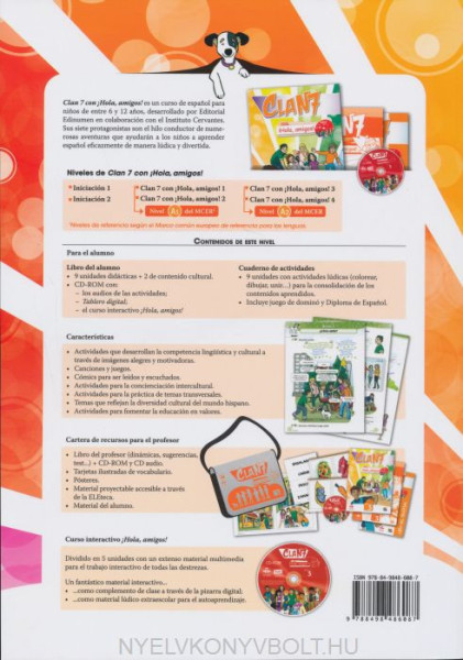 Clan 7 con !Hola, amigos! es un curso de espanol para ninos de entre 6 y 12 anos, desarrollado por Editorial Edinumen en colaboración con el Instituto Cervantes.
