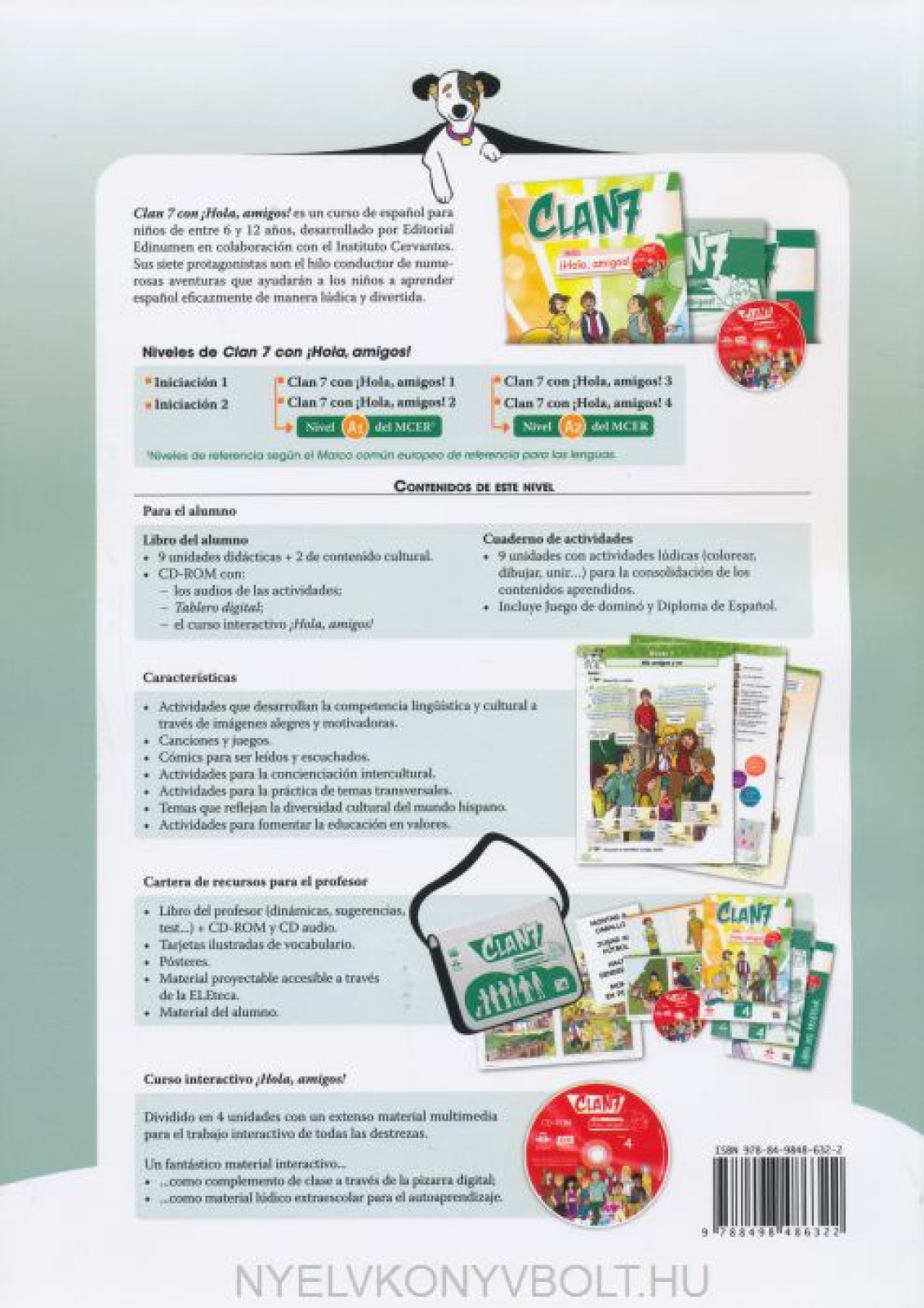 Clan 7con !Hola, amigos! es un curso de espanol para ninos de entre 6 y 12 anos, desarrollado por Editorial Edinumen en colaboración con el Instituto Cervantes.