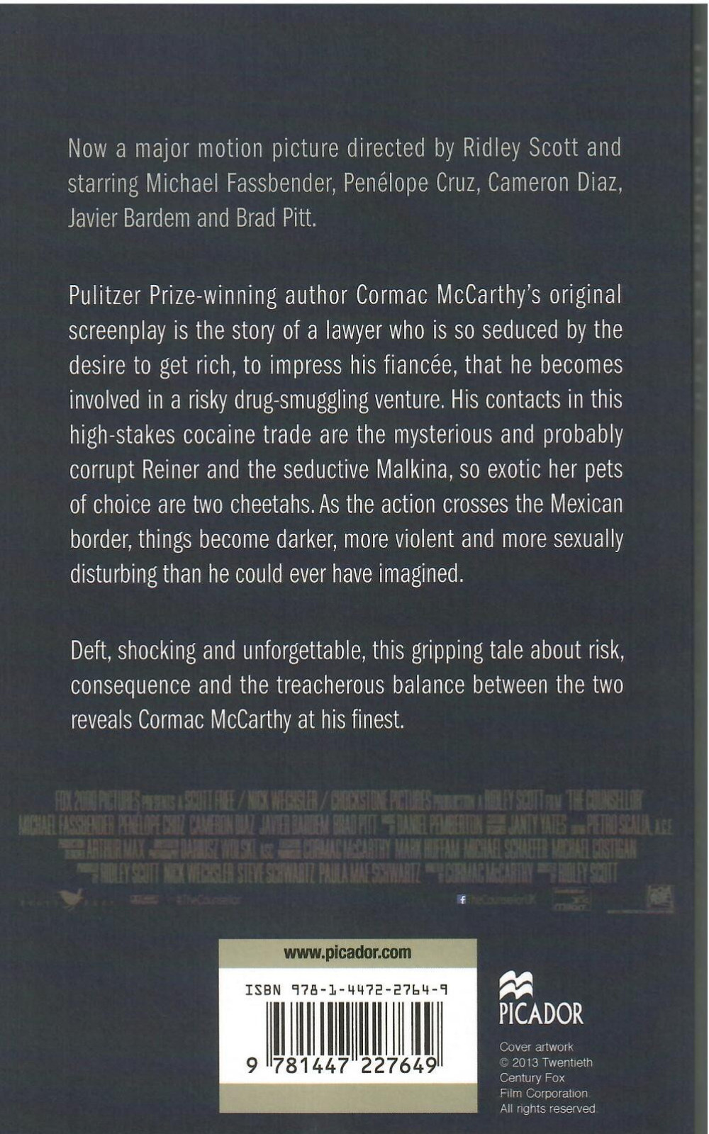 Brought to the screen by Ridley Scott (Alien, Blade Runner) and starring Michael Fassbender, The Counselor is an original screenplay from the legendary author of No Country for Old Men and The Road, Cormac McCarthy.
