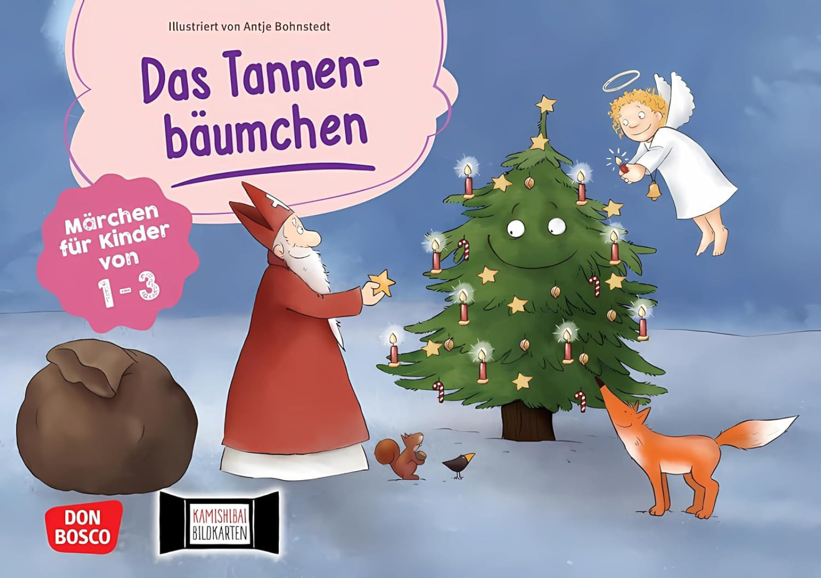 In einem schönen Garten stehen viele Bäume – von der Linde bis zum Kirschbaum ist alles vertreten. Auch ein kleiner Tannenbaum steht mitten unter ihnen, aber die anderen machen sich lustig über ihn. Doch bevor das Bäumchen zu traurig werden kann, bekommt es Besuch von einem Engel – und zu Weihnachten eine große Überraschung!Das entzückende Weihnachtsmärchen von Luise Büchner wurde für das Erzähltheater von Antje Bohnstedt in Szene gesetzt. Mit ihren Bildern haben schon die Jüngsten Freude an der Welt der Märchen!Kamishibai für Krippe und Kita: Für Kinder ab einem Jahr7 Bildkarten, klar illustriert mit gekürztem Text in einfacher SpracheInkl. Mitmachideen, die das Eintauchen in die Geschichte ermöglichenMit Erzähltipps, wie Sie das Interesse der Kinder weckenPerfekt geeignet für das Thema Weihnachten in der KrippeBildgestütztes Erzählen: Das kann das Kamishibai!