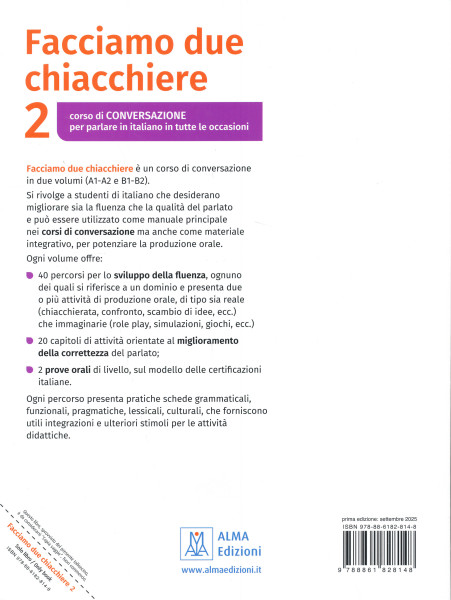 Facciamo due chiacchiere e un corso in due volumi che aiuta gli studenti a migliorare la fluenza e la correttezza nel parlato.