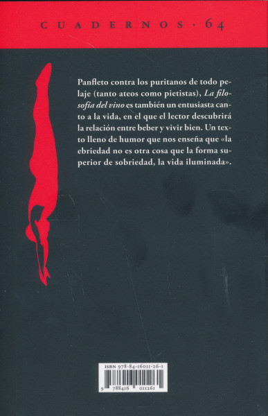 Panfleto contra los puritanos de todo pelaje (tanto ateos como pietistas), La filosofía del vino es también un entusiasta canto a la vida, en el que el lector descubrirá la relación entre beber y vivir bien.