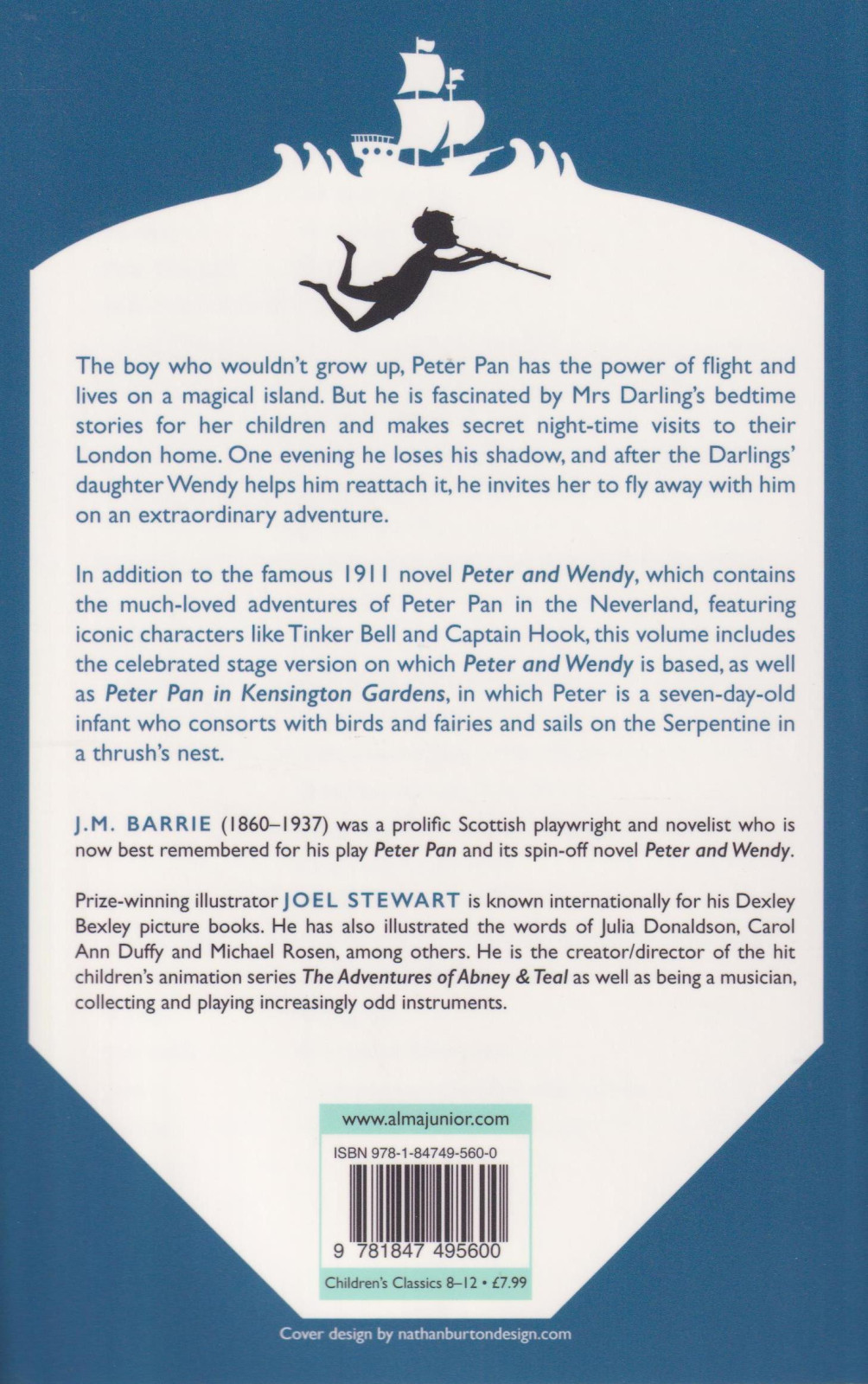 One evening he loses his shadow, and after Mary's daughter Wendy helps him reattach it, he invites her to fly away with him on an extraordinary adventure. In addition to the famous 1911 novel Peter and Wendy, which tells the familiar adventures of PeterPan in Neverland and introduces the unforgettable characters of Tinkerbell and Captain Hook, this volume contains the celebrated stage version on which Peter and Wendy is based, as well as Peter Pan in Kensington Gardens, in which Peter Pan is a seven-day-old infant who consorts with birds and fairies and travels down the Serpentine in a thrush's nest.