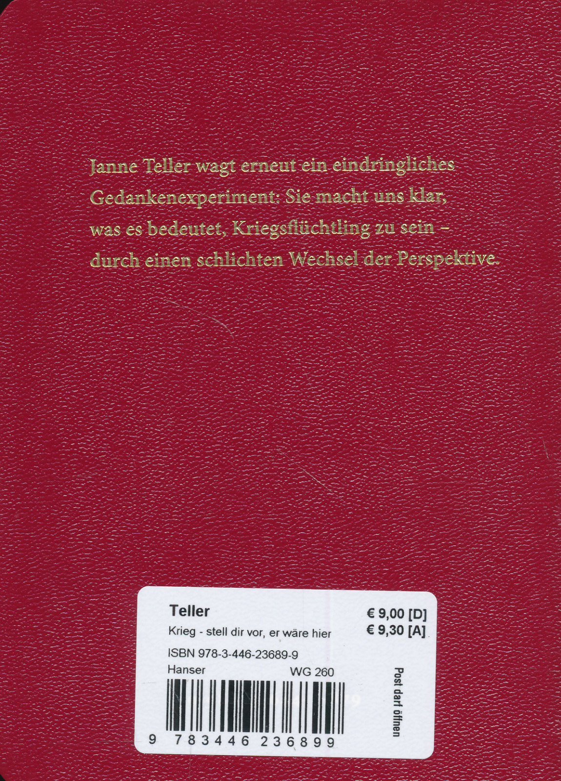Wer kann, flieht in den Nahen Osten, wie der 14-jährige Protagonist aus Deutschland. In einem ägyptischen Flüchtlingslager versucht er mit seiner Familie ein neues Leben zu beginnen. Weil er keine Aufenthaltsgenehmigung hat, kann er nicht zur Schule gehen, kein Arabisch lernen, keine Arbeit finden. Er fühlt sich als Außenseiter und sehnt sich nach Hause. Doch wo ist das? Nach dem Bestseller "Nichts" eine neue erschreckende Vision von Janne Teller zu hochaktuellen Themen wie Flucht, Migration und Fremdenfeindlichkeit.