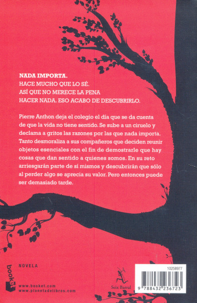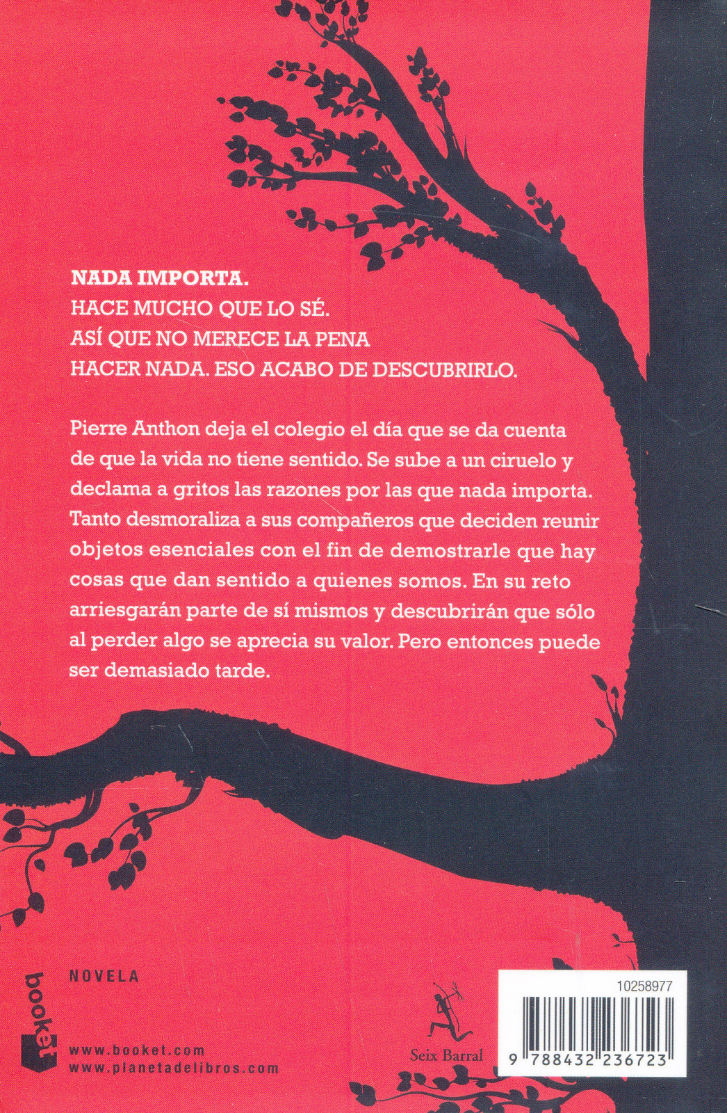 Pierre Antón deja el colegio el día que descubre que la vida no tiene sentido. Se sube a un ciruelo y declama a gritos las razones por las que nada importa en la vida. Tanto desmoraliza a sus companeros que deciden apilar objetos esenciales para ellos con el fin de demostrarle que hay cosas que dan sentido a quiénes somos. En su búsqueda arriesgarán parte de sí mismos y descubrirán que sólo al perder algo se aprecia su valor. Pero entonces puede ser demasiado tarde.
