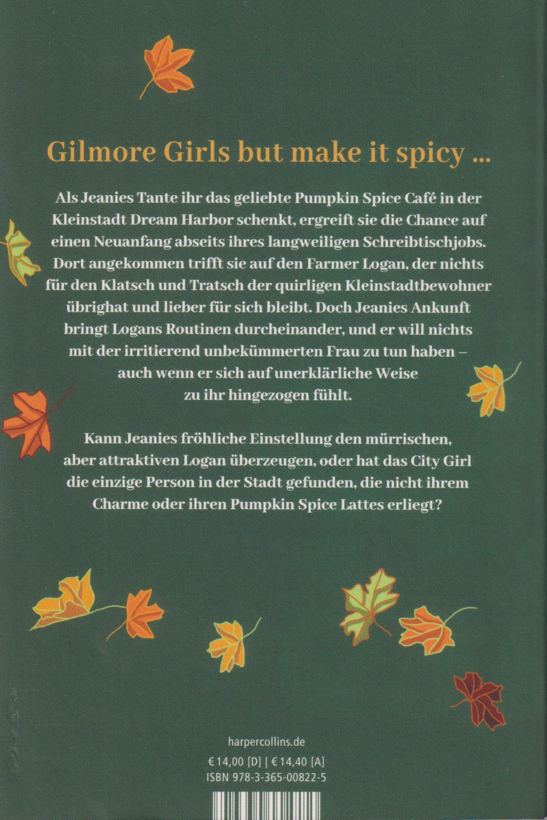 Als Jeanies Tante ihr das geliebte Pumpkin Spice Café in der Kleinstadt Dream Harbor schenkt, ergreift sie die Chance auf einen Neuanfang abseits ihres langweiligen Schreibtischjobs. Dort angekommen trifft sie auf den Farmer Logan, der nichts für den Klatsch und Tratsch der quirligen Kleinstadtbewohner übrig hat und lieber für sich bleibt. Doch Jeanies Ankunft bringt Logans Routinen durcheinander, und er will nichts mit der irritierend unbekümmerten Frau zu tun haben - auch, wenn er sich auf unerklärliche Weise zu ihr hingezogen fühlt.Kann Jeanies fröhliche Einstellung den mürrischen, aber attraktiven Logan überzeugen, oder hat das City Girl die einzige Person in der Stadt gefunden, die nicht ihrem Charme oder ihren Pumpkin Spice Lattes erliegt?