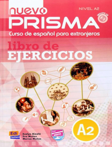 nuevo Prisma. Nivel A2 Ejercicios es un material elaborado para consolidar y mejorar el aprendizaje de la lengua a través de actividades que practican la comprensión auditiva y lectora, la expresión oral y escrita, los elementos lingüísticos y el léxico, siguiendo un enfoque comunicativo, orientado a la acción y centrado en el estudiante.