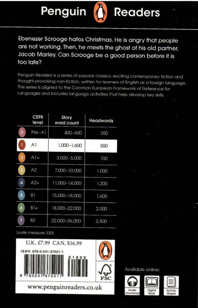 In this story, Ebenezer Scrooge hates Christmas. He is angry that people are not working. Then, he meets the ghost of his old partner, Jacob Marley. Can Scrooge be a good person before it is too late?Our Penguin Readers books include:Simple text(CEFR-levelled)Pictures to help you understand the storyFun exercises to help you learn and practise EnglishWith the print book, you can get even more help online:Read the book onlineListen to the book being read out loudGet lesson plansfor teachersFind answers to check your understanding