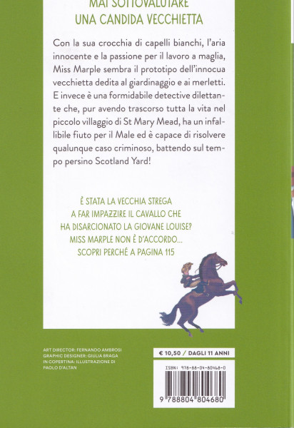 Con la sua crocchia di capelli bianchi, l'aria innocente e la passione per il lavoro a maglia, Miss Marple sembra il prototipo dell'innocua vecchietta dedita al giardinaggio e ai merletti... e invece e una formidabile detective dilettante che, pur avendo trascorso tutta la vita nel piccolo villaggio di St Mary Mead, ha un infallibile fiuto per il Male ed e capace di risolvere qualunque caso criminoso, battendo sul tempo persino Scotland Yard! Eta di lettura: da 11 anni.