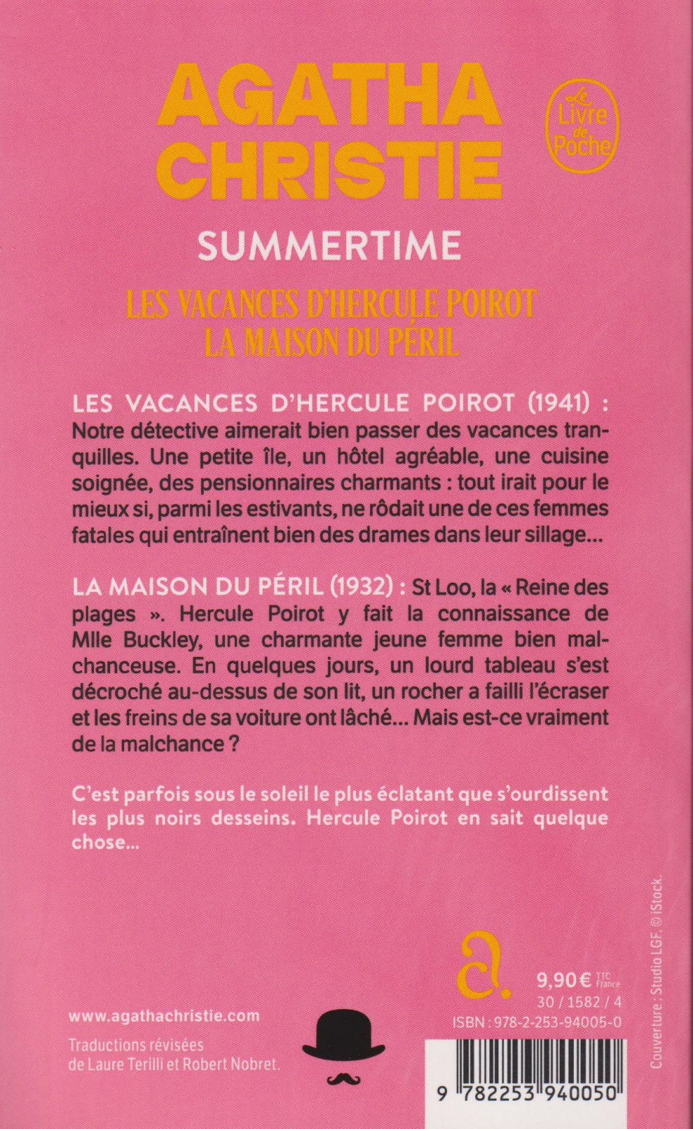 Les Vacances d’Hercule Poirot : Notre détective aimerait bien passer des vacances tranquilles. Une petite île, un hôtel agréable, une cuisine soignée, des pensionnaires charmants : tout irait pour le mieux si, parmi les estivants, ne rôdait une de ces femmes fatales qui entraînent bien des drames dans leur sillage...La Maison du péril : St Loo, surnommée la « Reine des plages ». Hercule Poirot y fait la connaissance de Miss Buckley, une charmante jeune femme bien malchanceuse. En quelques jours, un lourd tableau s’est décroché au-dessus de son lit, un rocher a failli l’écraser et les freins de sa voiture ont lâché... Mais est-ce vraiment de la malchance ? La détente, l’évasion, la mer, le sable chaud... Voila ce qu’évoquent les vacances pour le commun des mortels. Mais pas pour Hercule Poirot, car le crime, lui, ne connaît pas le repos. Et c’est parfois sous le soleil le plus éclatant que se fomentent les plus noirs desseins.