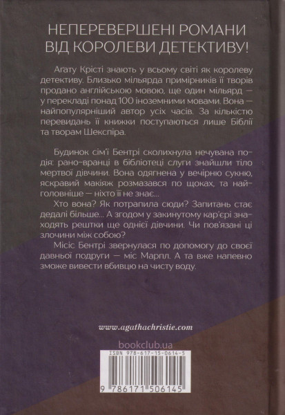 Budinok sim'ji Bentri skolikhnula nechuvana podija: rano-vrantsi v bibliotetsi slugi znajshli tilo mertvoji divchini. Vona odjagnena u vechirnju suknju, jaskravij makijazh rozmazavsja po schokakh, ta najgolovnishe - nikhto jiji ne znaje...Khto vona? Jakpotrapila sjudi? Zapitan staje dedali bilshe... A zgodom u zakinutomu kar'jeri znakhodjat reshtki sche odnijeji divchini. Chi pov'jazani tsi zlochini mizh soboju? Misis Bentri zvernulasja po dopomogu do svojeji davnoji podrugi - mis Marpl. A ta vzhe napevno zmozhe vivesti vbivtsju na chistu vodu.