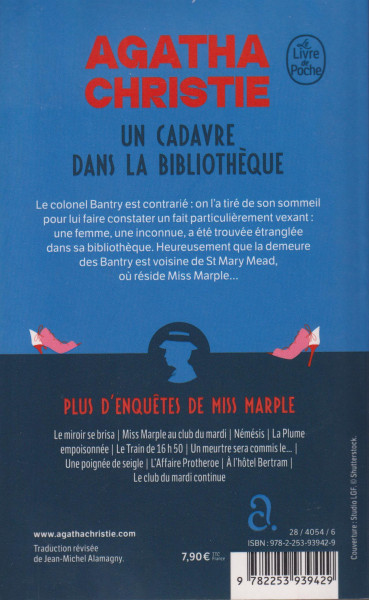 Le colonel Bentry est contrarié : on l’a tiré de son sommeil pour lui faire constater un fait particulierement vexant: une femme, une inconnue, a été trouvée étranglée dans sa bibliotheque… Venir ainsi se faire assassiner chez les gens ! Surtout que la jeune personne est vetue d’une toilette tape-a-l’oil du plus mauvais gout ! Tout a fait déplacée dans la bibliotheque aristocratique du manoir… Cruelle énigme pour la police ! Heureusement que la demeure des Bentry est voisine de Saint-Mary-Mead, le village de Miss Marple. C’est le bon sens de cette sympathique vieille dame qui, une fois de plus, permettra de trouver la solution.