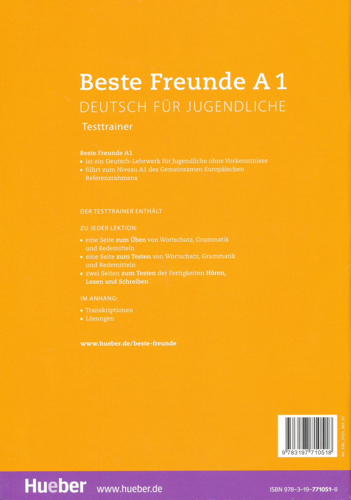 - Tests zu allen Lektionen des Kursbuchs- Testaufgaben zu Wortschatz und Grammatik sowie zu den Fertigkeiten Lesen, Hören, Schreiben, Sprechen