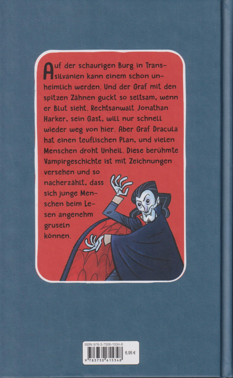 Auf der schaurigen Burg in Transsilvanien kann einem schon unheimlich werden. Und der Graf mit den spitzen Zähnen guckt so seltsam, wenn er Blut sieht. Rechtsanwalt Jonathan Harker, sein Gast, will nur schnell wieder weg. Aber Graf Dracula hat einen teuflischen Plan, und vielen Menschen droht Unheil. Diese berühmte Vampirgeschichte ist mit Zeichnungen versehen und so nacherzählt, dass sich junge Menschen beim Lesen angenehm gruseln können.