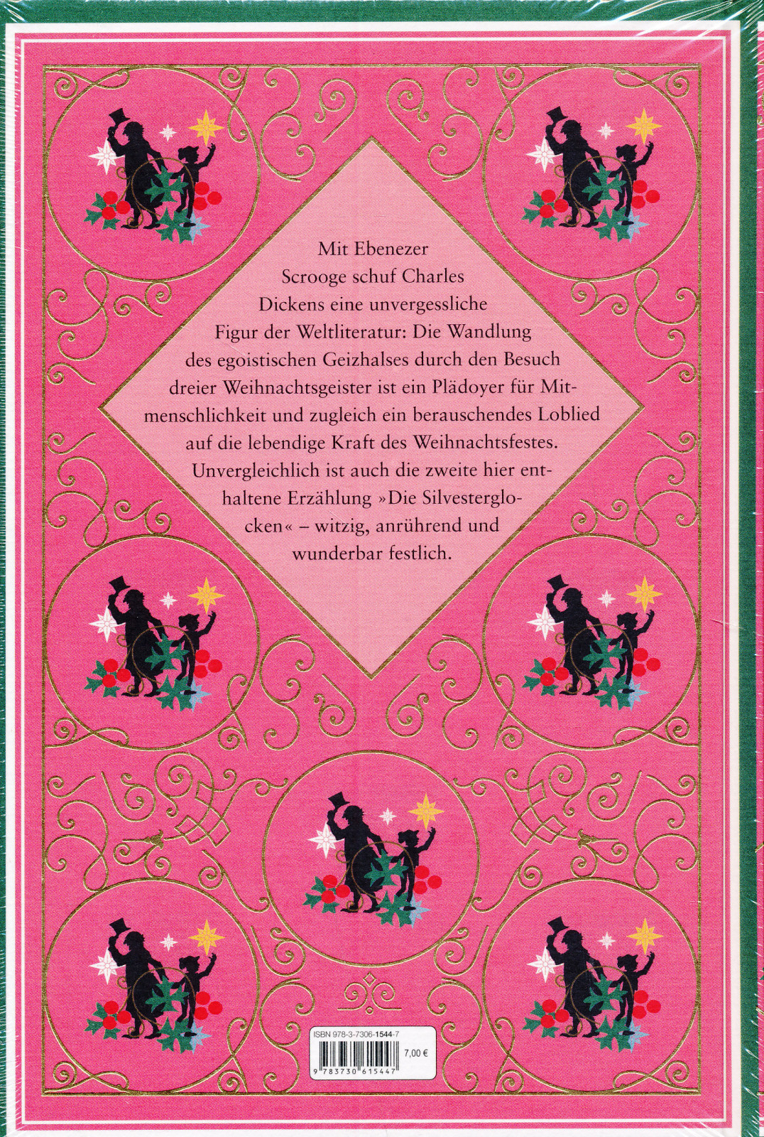 ....In der Wandlung des egoistischen Geizhalses durch den Besuch dreier Weihnachtsgeister liegt etwas unmittelbar Exemplarisches - sie ist ein Plädoyer für Mitmenschlichkeit und zugleich ein berauschendes Loblied auf die lebendige Kraft des Weihnachtsfestes. Unvergleichlich ist auch die zweite hier enthaltene Erzählung 'Die Silvesterglocken' - witzig, anrührend und wunderbar festlich. Hier als Schmuckausgabe mit Goldprägung und den Illustrationen der Erstausgaben.