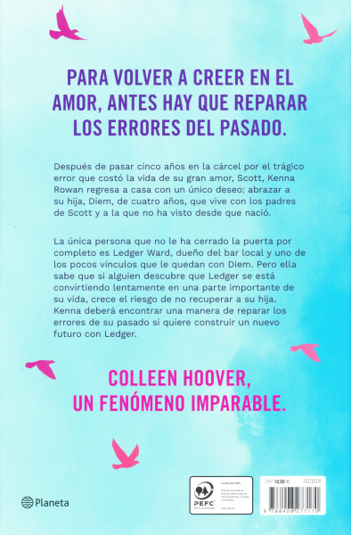 Después de pasar cinco anos en la cárcel por el trágico error que costó la vida de su gran amor Scott, Kenna Rowan regresa a casa con un único deseo: abrazar a su hija Diem, de cuatro anos, que vive con los padres de Scott y a la que no ha visto desde que nació.La única persona que no le ha cerrado la puerta por completo es Ledger Ward, dueno del bar local y uno de los pocos vínculos que le quedan con Diem. Pero ella sabe que si alguien descubre que Ledger se está convirtiendo lentamente en una parte importante de su vida, crece el riesgo de no recuperar a su hija. Kenna deberá encontrar una manera de reparar los errores de su pasado si quiere construir un nuevo futuro con Ledger.