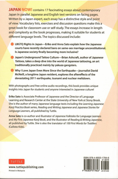 JAPAN NOW! A Japanese Language Reader contains 17 fascinating stories and essays about contemporary Japanese society in parallel Japanese and English versions on facing pages. The stories are written by a number of experienced commentators on Japan, each with a distinctive style and point of view.