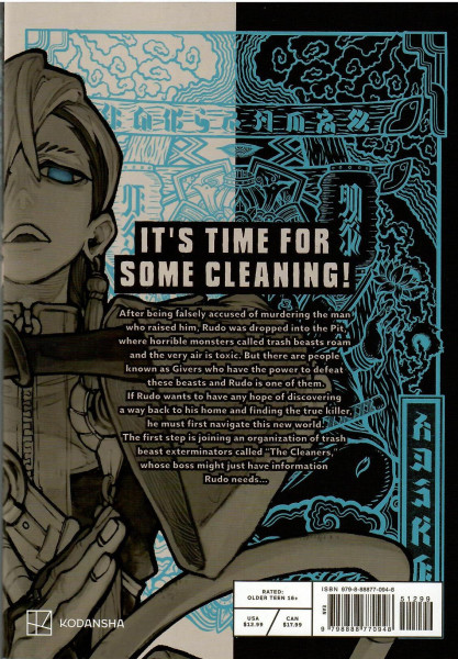 The more the rich glitter, the higher the price paid by the poor… After being falsely accused of murdering the man who raised him, Rudo was dropped into the Pit, where horrible monsters called trash beasts roam and the very air is toxic. But there are people known as Givers who have the power to defeat these beasts and Rudo is one of them. If Rudo wants to have any hope of discovering a way back to his home and finding the true killer, he must first navigate this new world. The first step is joining anorganization of trash beast exterminators called “The Cleaners,” whose boss might just have information Rudo needs…
