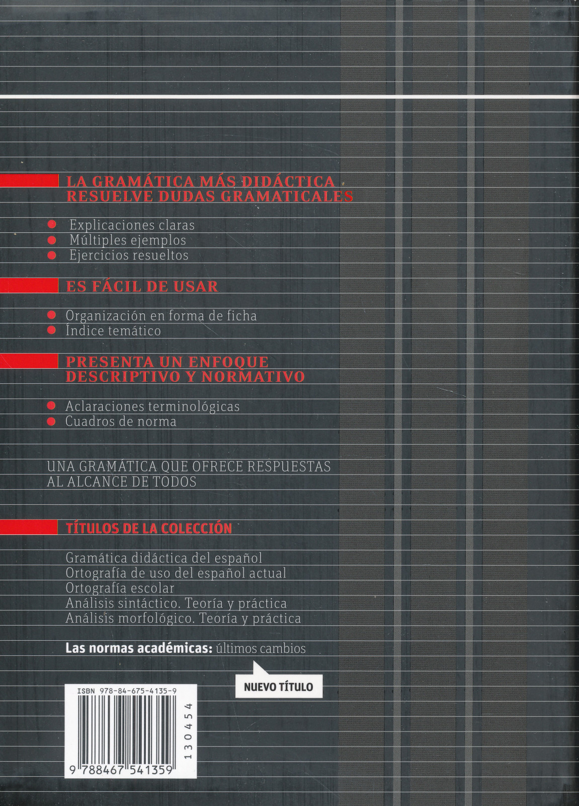 De gran utilidad para alumnos y profesores de ensenanza no universitaria y para estudiantes de filología, así como para todas aquellas personas que tengan un claro interés por el funcionamiento gramatical de nuestra lengua.