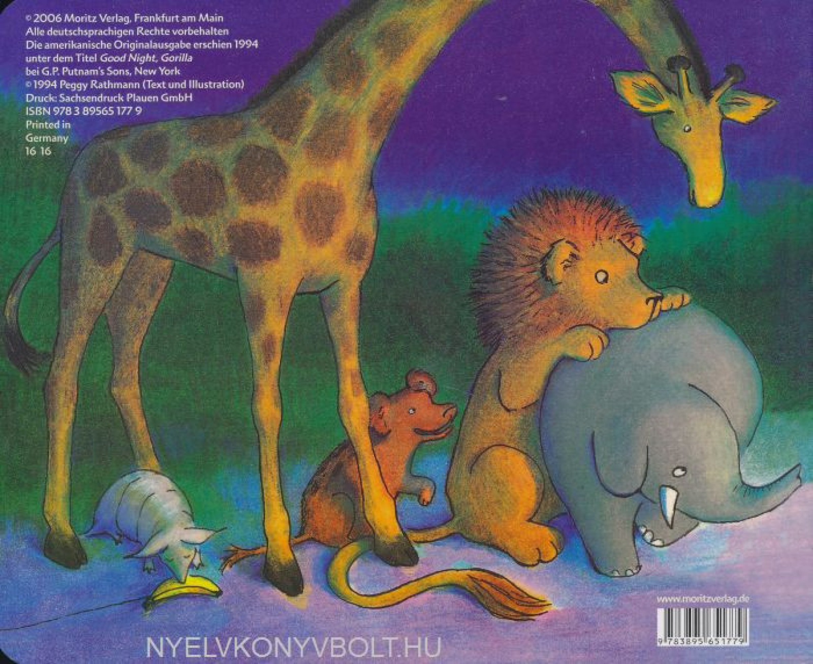 Der kleine Gorilla stibitzt dem Zoowärter den Schlüssel! Und nun folgen die Zootiere ihrem Wärter bis ins Schlafzimmer. Ein Bilderbuchschatz in Pappe! Gute Nacht, Gorilla! ist ein großartiges Bilderbuch für die Kleinsten! Es ist prächtig nachzuvollziehen, wie der kleine Gorilla dem Zoowärter den Schlüssel entwendet und dann die Tiere des Zoos, vom Elefant bis zum Gürteltier, dem müden Wärter bis ins Schlafzimmer folgen. Und wenn nicht alle dessen Frau so höflich auf ihr Gute Nacht, Liebling geantwortethätten, hätten sie dort wohl auch bleiben können .