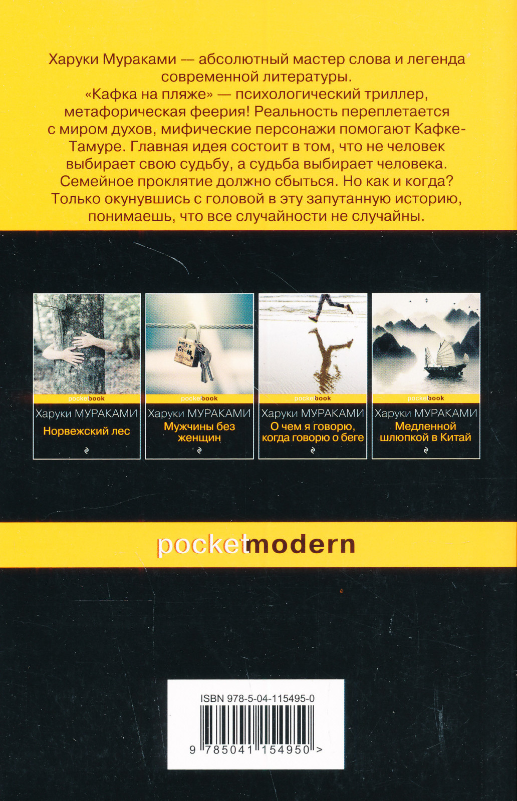 Kafka na pljazhe - psikhologicheskij triller, metaforicheskaja feerija! Gde realnost perepletaetsja s mirom dukhov, gde dejstvujut mificheskie personazhi i pomogajut Kafke - Tamure. No glavnaja ideja v tom, chto chelovek ne vybiraet svoju sudbu, sudbavybiraet cheloveka. Semejnoe prokljatie dolzhno sbytsja. No kak i kogda? Tolko okunuvshis s golovoj v etu zaputannuju istoriju, ponimaesh, chto vse sluchajnosti ne sluchajny.