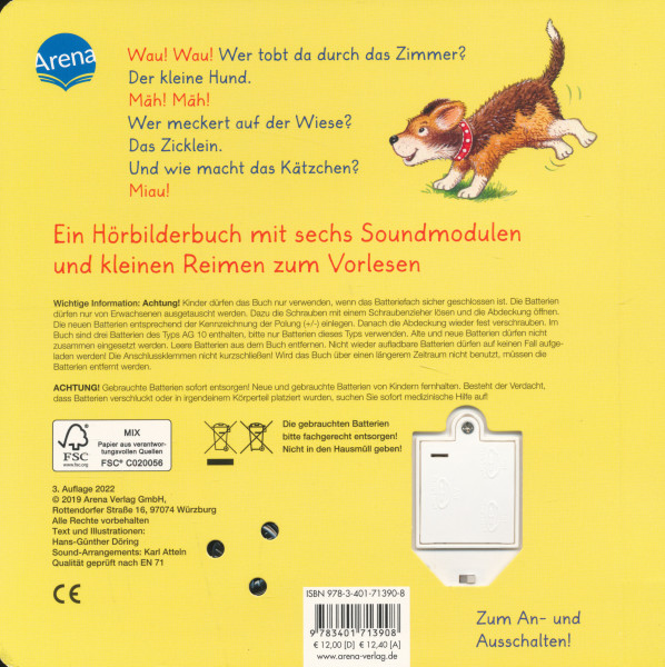 Einfach draufdrücken! Das können schon die Kleinsten. Dann erklingt die Tierstimme ganz lebensecht. Ein Hörbilderbuch voller Lieblingstiere in ihren Lebensräumen mit An- und Ausschalter und kleinen Reimen zum Vorlesen.