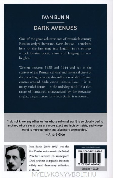Written between 1938 and 1944 and set in the context of the Russian cultural and historical crises of the preceding decades, this collection of short fiction centres around dark, erotic liaisons. Love – in its many varied forms – is the unifying motif in a rich range of narratives, characterized by the evocative, elegiac, elegant prose for which Bunin is renowned. Contents: ‘Dark Avenues’, ‘The Caucasus’, ‘A Ballad’, ‘Styopa’, ‘Muza’, ‘A Late Hour’, ‘Rusya’, ‘A Beauty’, ‘The Simpleton’, ‘Antigone’, ‘AnEmerald’, ‘The Visitor’, ‘Wolves’, ‘Calling Cards’, ‘Zoyka and Valeria’, ‘Tanya’, ‘In Paris’, ‘Galya Ganskaya’, ‘Heinrich’, ‘Natalie’, ‘Upon a Long-Familiar Street’, ‘A Riverside Inn’, ‘The Godmother’, ‘The Beginning’, ‘The Oaklings’, ‘Miss Klara’, ‘Madrid’, ‘A Second Pot of Coffee’, ‘Iron Coat’, ‘A Cold Autumn’, ‘The Steamer Saratov’, ‘The Raven’, ‘The Camargue’, ‘One Hundred Rupees’, ‘Vengeance’, ‘The Swing’, ‘Pure Monday’, ‘The Chapel’. This edition also contains extra material about the author’s lif