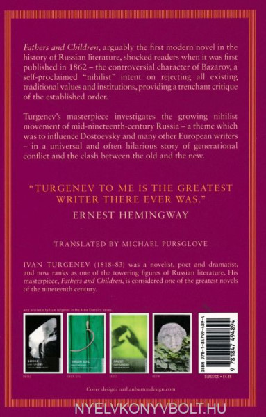 The controversial character of Bazarov, a self-proclaimed nihilist intent on rejecting all existing traditional values and institutions, providing a trenchant critique of the established order. Turgenev's masterpiece investigates the growing nihilist movement of mid-nineteenth-century Russia - a theme which was to influence Dostoevsky and many other European writers - in a universal, and often hilarious, story of generational conflict, and the clash between the old and the new.