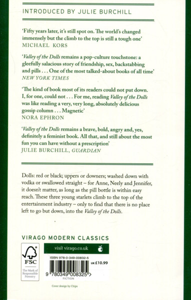Valley of the Dolls took the world by storm when it was first published, fifty years ago. Never had a book been so frank about sex, drugs and show business. It is often sited as the bestselling novel of all time.Dolls - red or black; capsules or tablets; washed down with vodka or swallowed straight. For Anne, Neely and Jennifer, it doesn't matter, as long as the pill bottle is within easy reach. These three beautiful women become best friends when they are young and in New York, struggling to make their names in the entertainment industry. Only when they reach the peak of their careers do they find there's nowhere left to go but down - to the Valley of the Dolls.