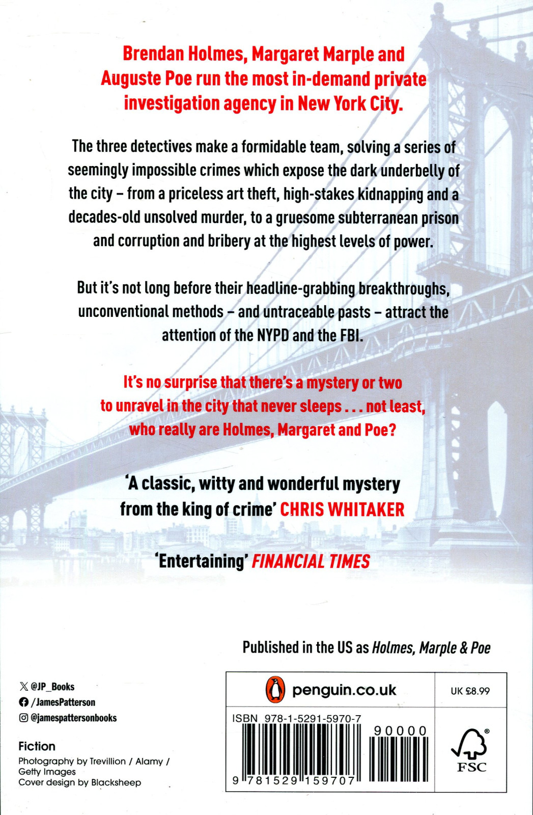 The three detectives make a formidable team, solving a series of seemingly impossible crimes which expose the dark underbelly of the city - from a priceless art theft, high-stakes kidnapping and a decades-old unsolved murder, to a gruesome subterranean prison and corruption and bribery at the highest levels of power.But it's not long before their headline-grabbing breakthroughs, unconventional methods - and untraceable pasts - attract the attention of the NYPD and the FBI.After all, it's no surprise that there's a mystery or two to unravel in the city that never sleeps . . . not least, who really are Holmes, Margaret and Poe?