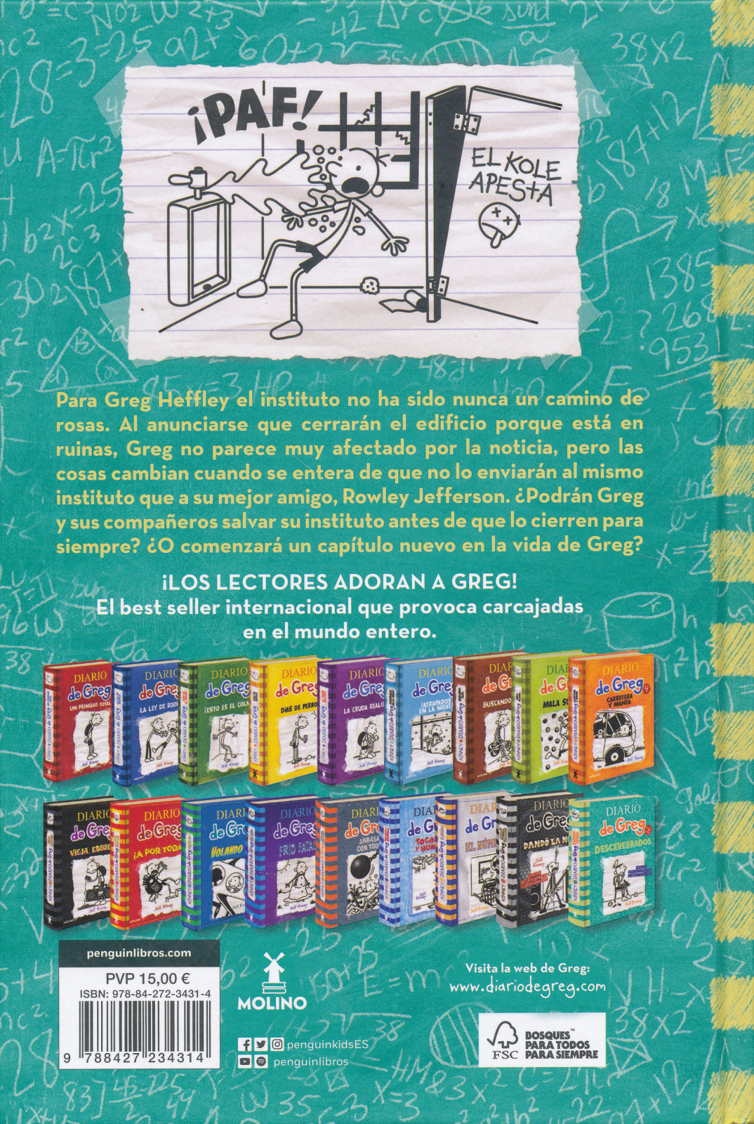 Hasta ahora, el instituto no ha sido lo que diríamos un camino de rosas para Greg Heffley. Así que cuando la ciudad amenaza con cerrar el edificio porque está en ruinas, a Greg no se le ve muy afectado.Pero cuando se entera de que no lo enviarán al mismo instituto que a su mejor amigo, Rowley Jefferson, las cosas cambian. ?Podrán Greg y sus companeros salvar su instituto antes de que lo cierren para siempre? ?O será este el inicio de un capítulo completamente nuevo para Greg?