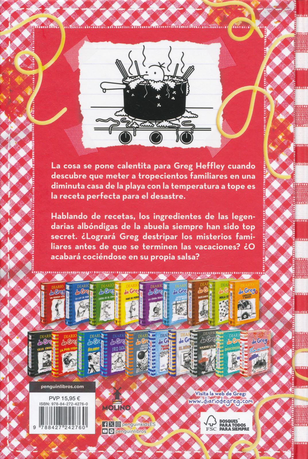 En En su salsa, la entrega más reciente de la serie superventas Diario de Greg, Greg descubre que meter a tropocientos familiares en una casa diminuta con la temperatura a tope es la receta perfecta para el desastre.<Enter><Enter>Un auténtico fenómeno mundial.<Enter><Enter>