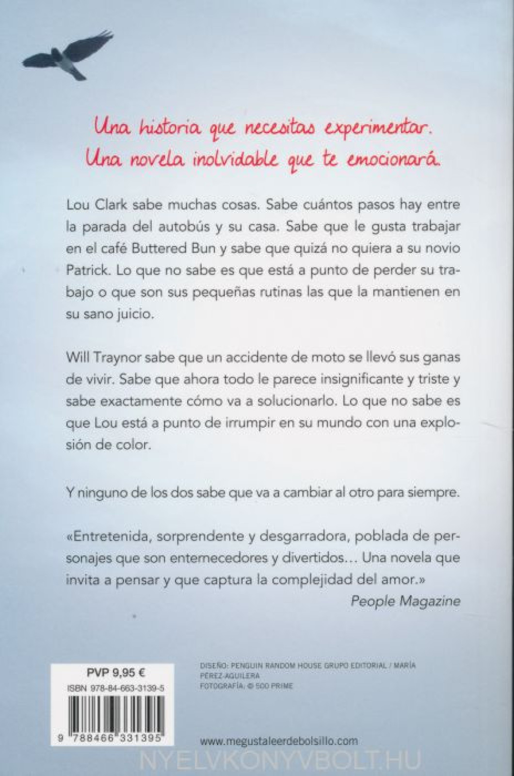 Lo que Lou no sabe es que está a punto de perder su trabajo o que son sus pequenas rutinas las que la mantienen en su sano juicio. Will Traynor sabe que un accidente de moto se llevó sus ganas de vivir. Sabe que ahora todo le parece insignificante y triste y sabe exactamente cómo va a solucionarlo.