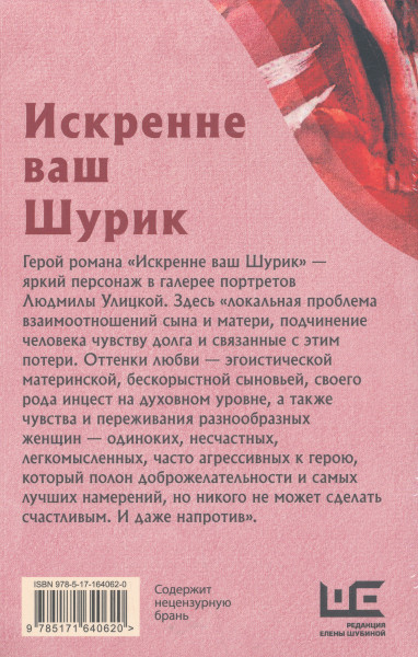 Geroj romana "Iskrenne vash Shurik" - jarkij personazh v galeree portretov Ljudmily Ulitskoj. Zdes "lokalnaja problema vzaimootnoshenij syna i materi, podchinenie cheloveka chuvstvu dolga i svjazannye s etim poteri. Ottenki ljubvi -egoisticheskoj materinskoj, beskorystnoj synovnej, svoego roda intsest na dukhovnom urovne, a takzhe tselaja galereja chuvstv raznoobraznykh zhenschin - odinokikh, neschastnykh, legkomyslennykh, chasto agressivnykh k geroju, kotoryj polon dobrozhelatelnosti i samykh luchshikh namerenij, no nikogo ne mozhet sdelat schastlivymi. I dazhe naprotiv".