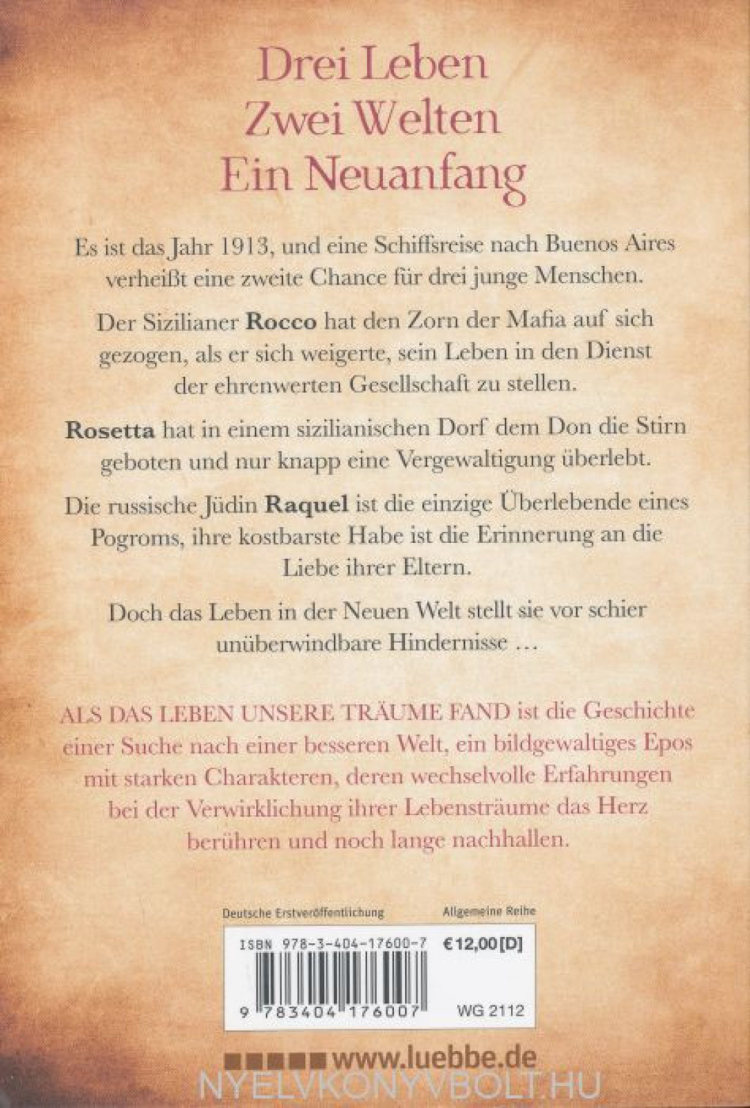 Der Sizilianer Rocco hat den Zorn der Mafia auf sich gezogen, als er sich weigerte, sein Leben in den Dienst der ehrenwerten Gesellschaft zu stellen. Rosetta hat in einem sizilianischen Dorf dem Don die Stirn geboten und nur knapp eine Vergewaltigung überlebt. Die russische Jüdin Raquel ist die einzige Überlebende eines Pogroms, ihre kostbarste Habe ist die Erinnerung an die Liebe ihrer Eltern. Doch das Leben in der Neuen Welt stellt sie vor schier unüberwindbare Hindernisse.