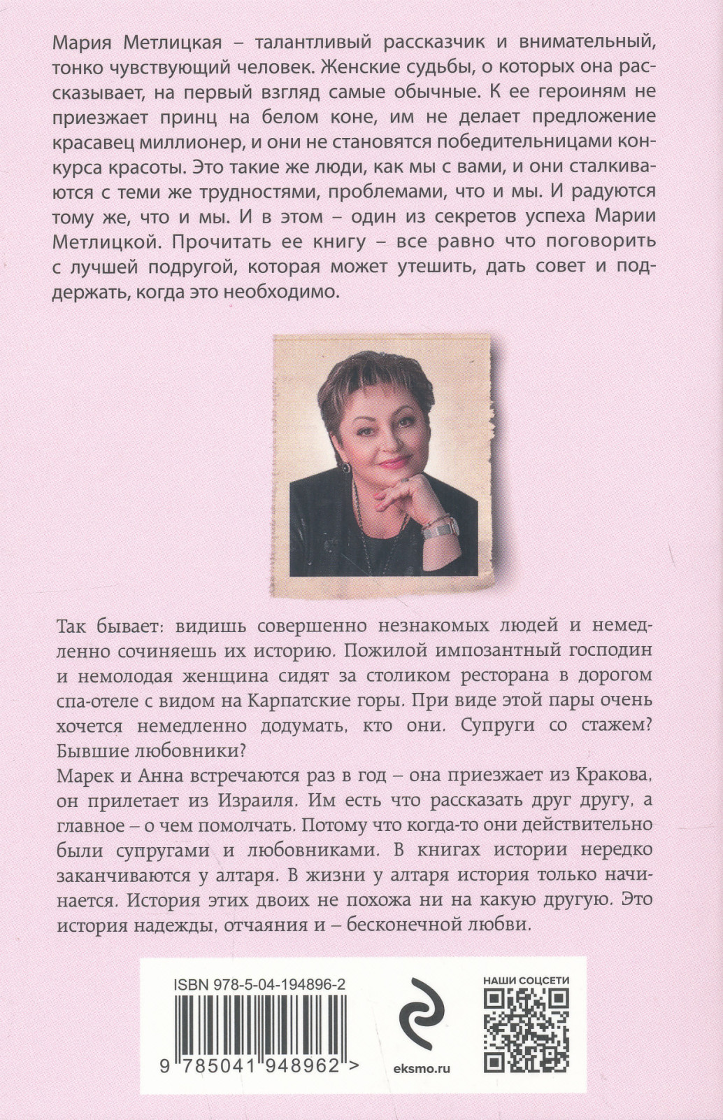 Odna iz samykh trogatelnykh, samykh teplykh knig Marii Metlitskoj. Istorija Mareka i Anny ne pokhozha ni na kakuju druguju.