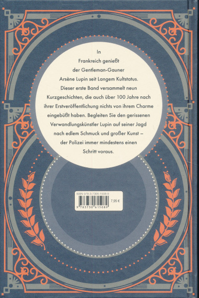 Nun liegt hier der erste Band des Krimi-Klassikers von Maurice Leblanc als Hardcover-Ausgabe vor. Er versammelt neun Kurzgeschichten, die auch über 120 Jahre nach ihrer Erstveröffentlichung nichts von ihrem Charme eingebüßt haben. Begleiten Sie den gerissenen Verwandlungskünstler Lupin auf seiner Jagd nach edlem Schmuck und großer Kunst - der Polizei immer mindestens einen Schritt voraus.