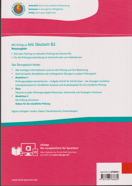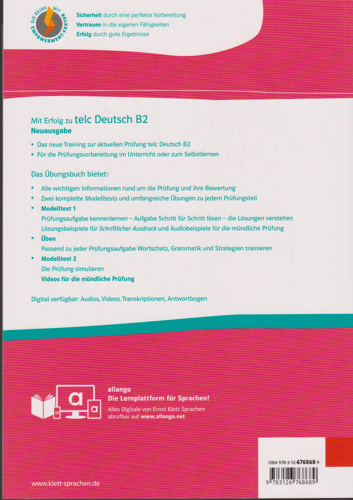 A gyakorlókönyv tartalma:Minden fontos információ a vizsgáról és annak értékeléséről.Két teljes mintavizsga és minden vizsgarészhez kiterjedt gyakorlatok.A vizsgafeladatok megismerése – a feladat lépésről lépésre történő megoldása – a megoldásokmegértése.Példák az írásbeli kifejezésre és hanganyagok a szóbeli vizsgához.Minden vizsgafeladathoz illeszkedő szókincs, nyelvtan és stratégiák gyakorlása.A kötetet kiegészítő anyagai az allango platformon érhetőek el.