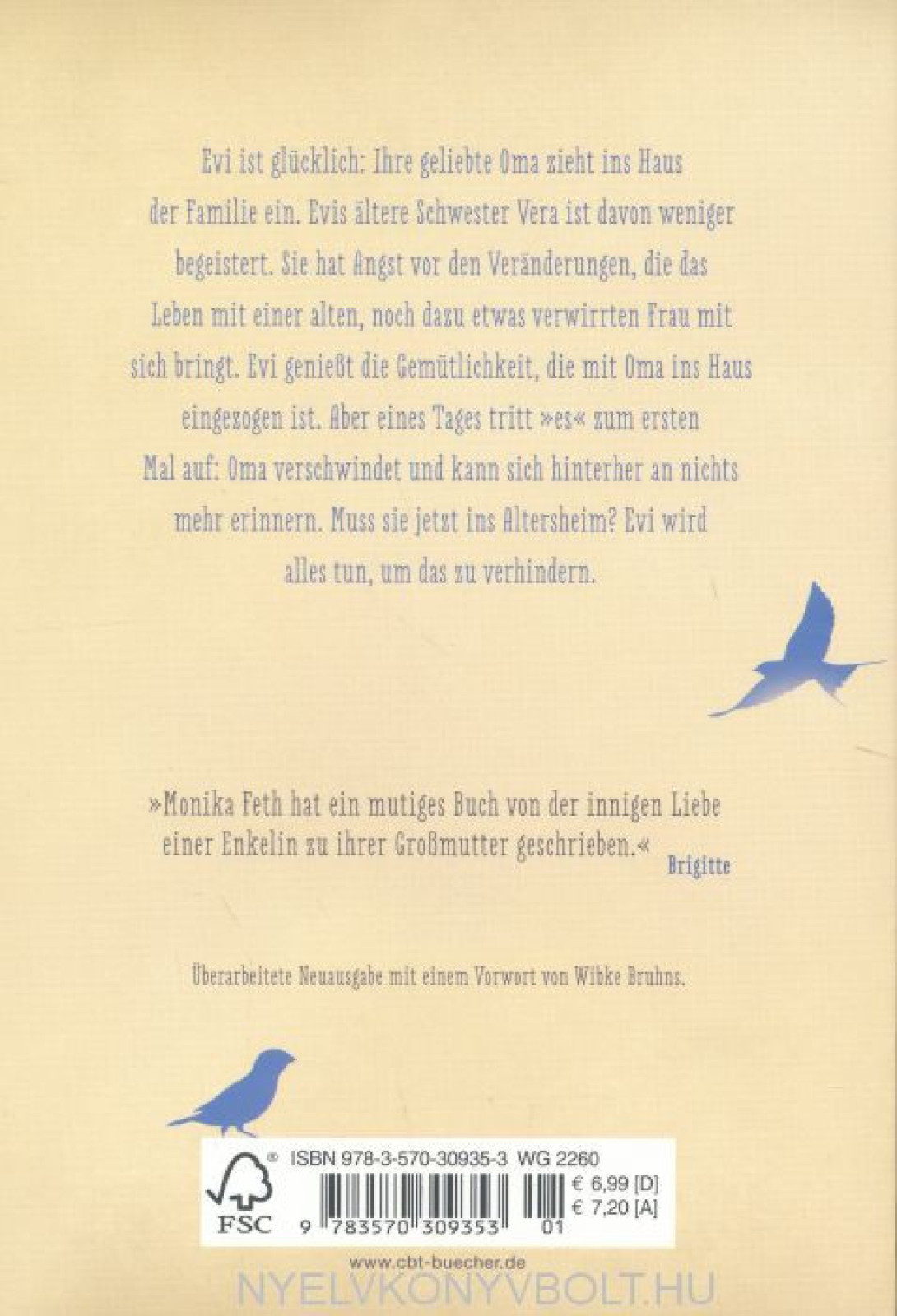 Evis ältere Schwester Vera ist von der neuen Familienperspektive weniger begeistert. Die Vorstellung, ihr Leben umkrempeln zu müssen, um mit einer alten, dazu noch verwirrten Frau zusammenzuleben, ist ein Horror für sie. Als Oma endlich da ist, kann Eviüberhaupt nicht verstehen, warum sie »verwirrt« sein soll. Oma ist der gute Geist des Hauses. Seit sie sich um den Haushalt kümmert, ist alles viel schöner, gemütlicher und freundlicher geworden. Aber eines Abends ist es soweit: Oma ist plötzlich verschwunden. Bei der nächtlichen Suchaktion findet Evi sie verloren und in sich zusammengekauert in der Bahnhofshalle. Am nächsten Tag kann Oma sich an nichts mehr erinnern ...Überarbeitete Neuausgabe mit einem Vorwort von Wibke Bruhns