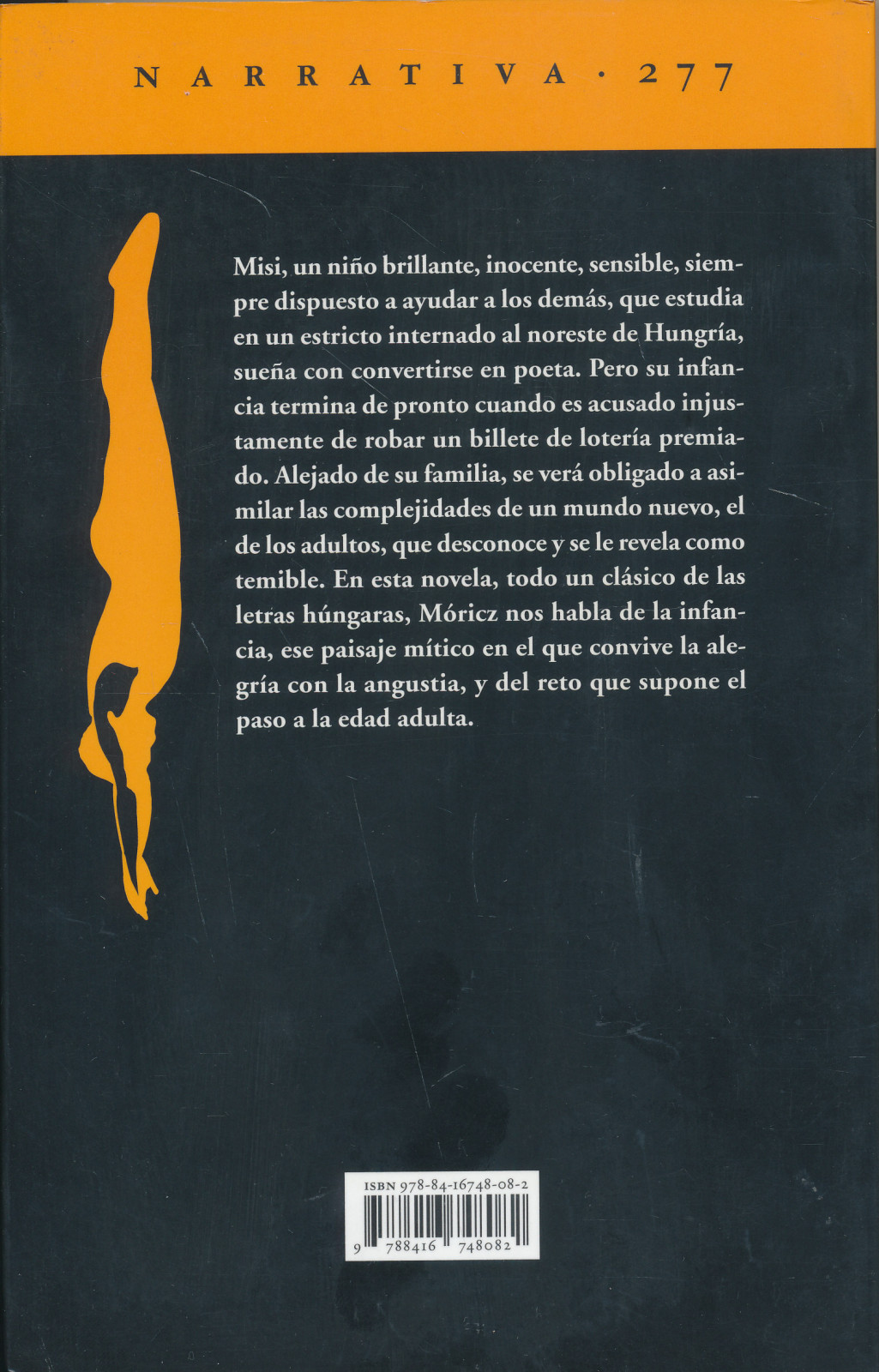 Misi, un nino brillante, inocente, sensible, siempre dispuesto a ayudar a los demás, que estudia en un estricto internado al noreste de Hungría, suena con convertirse en poeta. Pero su infancia termina de pronto cuando es acusado injustamente de robar un billete de lotería premiado. Alejado de su familia, se verá obligado a asimilar las complejidades de un mundo nuevo, el de los adultos, que desconoce y se le revela como temible. En esta novela, todo un clásico de las letras húngaras, Móricz nos habla de la infancia, ese paisaje mítico en el que convive la alegría con la angustia, y del reto que supone el paso a la edad adulta.