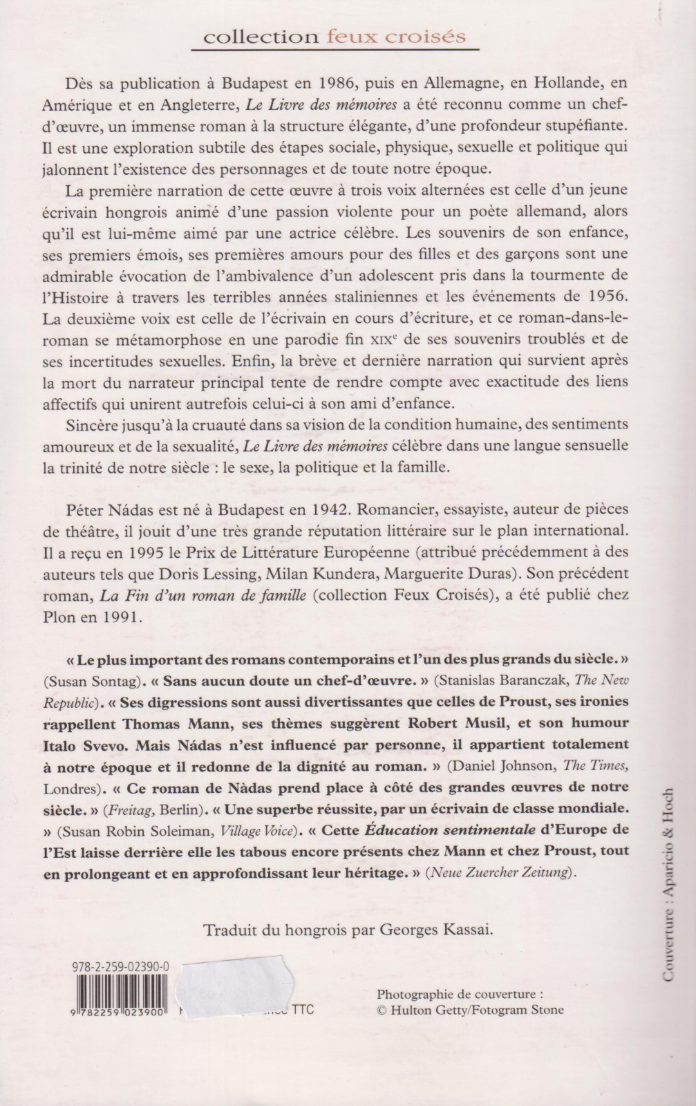 Nádas Péter: Le Livre des mémoires (Emlékiratok könyve francia nyelven) (1998)