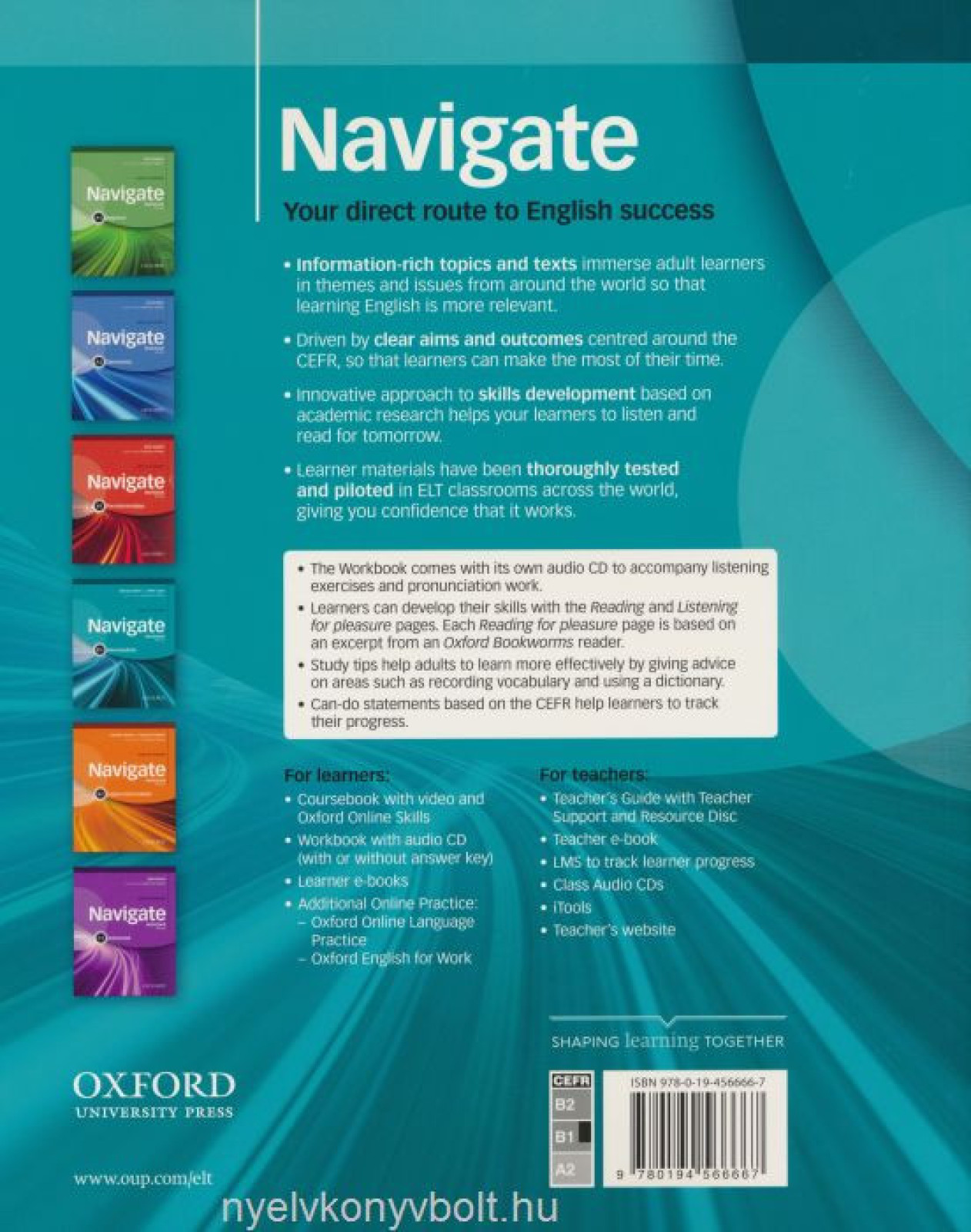 Navigate is a brand new, six-level General English course tailored exclusively to adults. The first 3 levels are publishing early 2015 (A2, B1 and B1+) with the next 3 levels following early 2016.