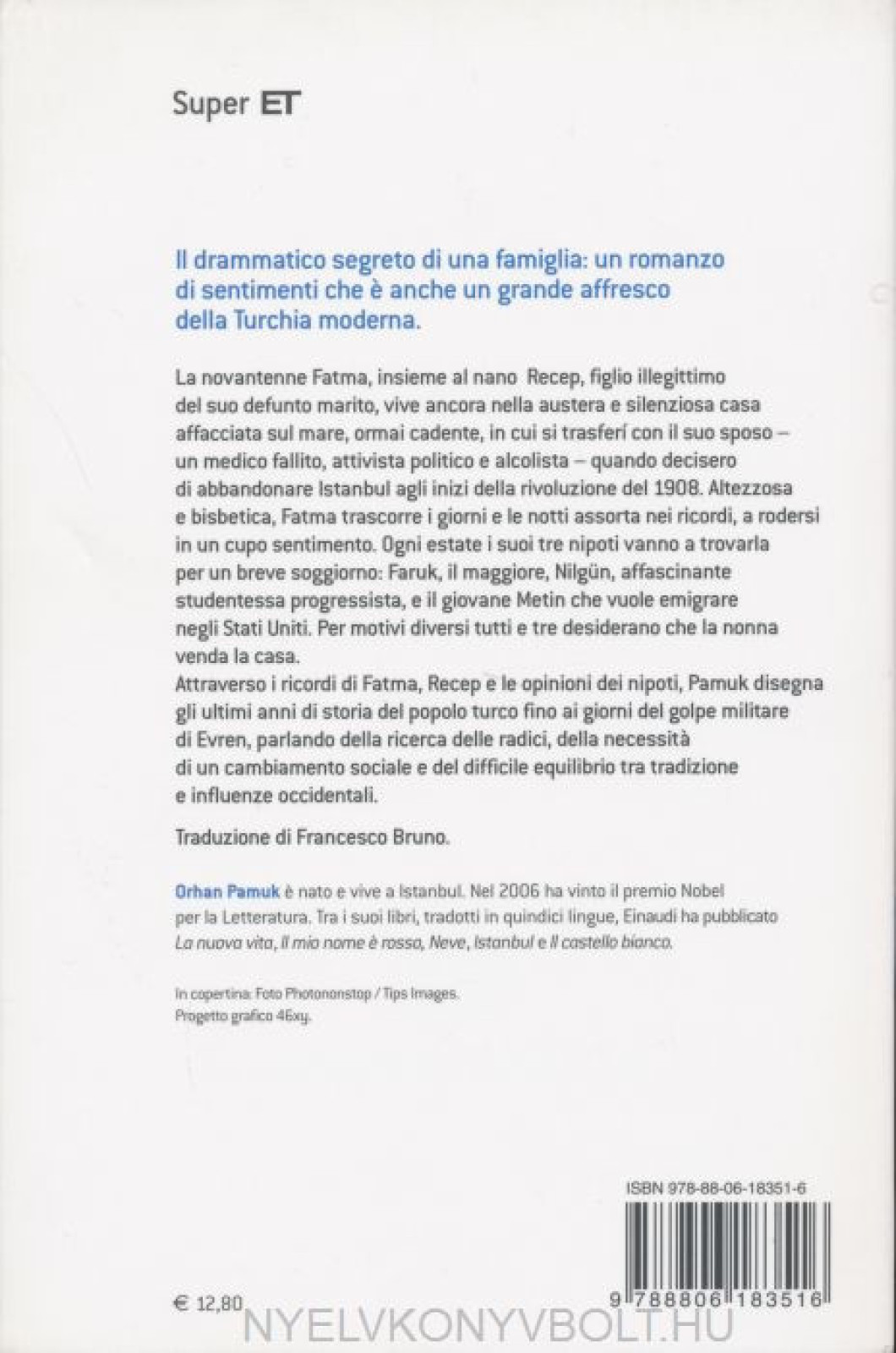 Fatma, insieme al nano Recep, figlio illegittimo del suo defunto marito, vive ancora nella casa in cui si trasferi con il suo sposo - un medico fallito, attivista politico e alcolista - quando decisero di abbandonare Istanbul agli inizi della rivoluzione del 1908. Nella cadente villa in legno Fatma, altezzosa e bisbetica, trascorre i giorni e le notti assorta nei ricordi, a rodersi in un cupo sentimento. I suoi figli sono morti, ma i suoi tre nipoti ogni estate vanno a trovarla per un breve soggiorno. Faruk, il maggiore, e uno storico che, abbandonato dalla moglie, ha trovato nell'alcol un efficace palliativo alla noia; Nilgün e un'affascinante studentessa progressista che sogna una rivoluzione sociale che non arriva mai; il giovane Metin e un genio della matematica che vuole emigrare negli Stati Uniti per arricchirsi. Tutti e tre, per motivi diversi, desiderano che la nonna venda la casa.