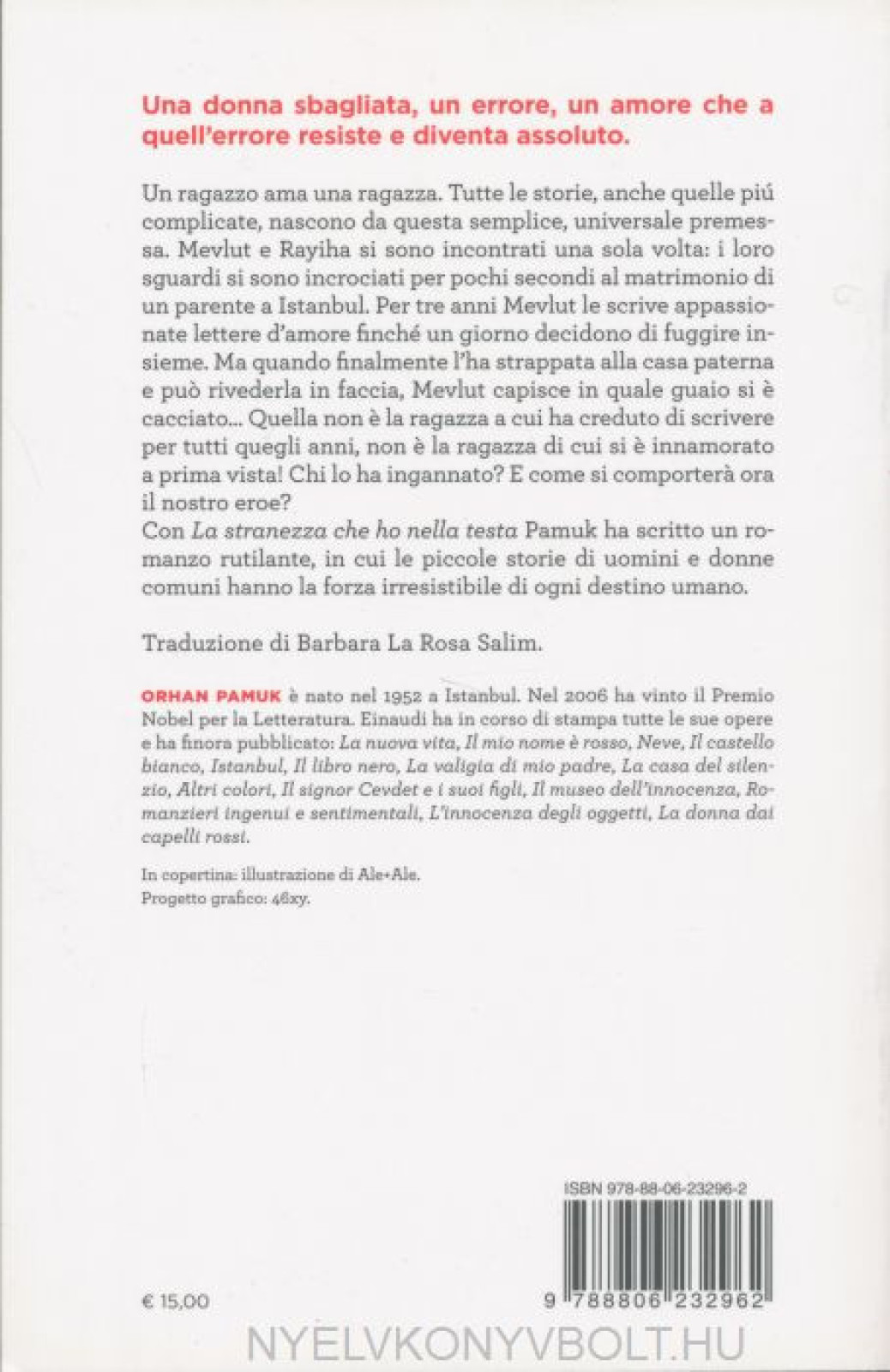 Un ragazzo ama una ragazza. Tutte le storie, anche quelle piu complicate, nascono da questa semplice, universale premessa. Mevlut e Rayiha si sono incontrati una sola volta: i loro sguardi si sono incrociati per pochi secondi al matrimonio di un parentea Istanbul. Per tre anni Mevlut le scrive appassionate lettere d'amore finché un giorno decidono di fuggire insieme. Ma quando finalmente l'ha strappata alla casa paterna e puo rivederla in faccia, Mevlut capisce in quale guaio si e cacciato... Quella non e la ragazza a cui ha creduto di scrivere per tutti quegli anni, non e la ragazza di cui si e innamorato a prima vista! Chi lo ha ingannato? E come si comportera ora il nostro eroe? Con "La stranezza che ho nella testa" Pamuk ha scritto un romanzo rutilante, in cui le piccole storie di uomini e donne comuni hanno la forza irresistibile di ogni destino umano.