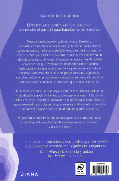 La psicóloga Noémi Orvos-Tóth revela cómo las heridas de nuestros antepasados pueden estar condicionando nuestra existencia sin que lo sepamos.A través de estudios científicos, historias impactantes de pacientes y herramientas de autoexploración, laautora nos guía en un viaje hacia el pasado familiar para comprender el presente y reescribir el futuro. Desde el impacto de traumas de guerra en generaciones posteriores hasta cómo el abandono o el rechazo en la infancia pueden transmitirse en la familia, este libro ofrece una mirada profunda y esclarecedora sobre el poder de la memoria emocional.Una lectura imprescindible para quienes buscan respuestas en su historia familiar y desean transformar su vida desde la raíz.