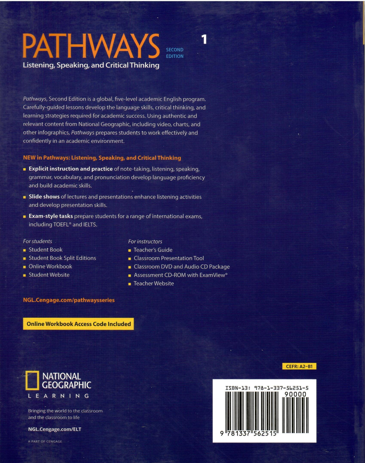 Carefully-guided lessons develop the language skills, critical thinking, and learning strategies required for academic success. Using authentic and relevant content from National Geographic, including video, charts, and other infographics, Pathways prepares students to work effectively and confidently in an academic environment.