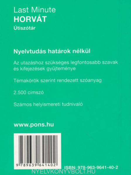 - kb. 2 500-3000 szót és kifejezést tartalmaz- átfogó szókincset nyújt az utazás során előforduló beszédhelyzetekhez- tematikus felépítésű pl.: vásárlás, szálláshelyek, vendéglátás stb.- a könyv végén magyar-idegennyelv szószedet segít megtalálni a keresett szót- számos helyismereti tudnivalót közvetít- vízhatlan borítója tartós és lemosható