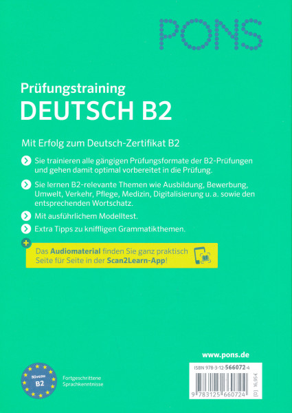 Sie trainieren alle gängigen Prüfungsformate der B2-Prüfungen und gehen damit optimal vorbereitet in die Prüfung.Sie lernen B2-relevante Themen wie Ausbildung, Bewerbung, Umwelt, Verkehr, Pflege, Medizin, Digitalisierung u. a. sowie den entsprechendenWortschatz.Mit ausführlichem Modelltest.Extra Tipps zu kniffligen Grammatikthemen.Das Audiomaterial zum Aussprachetraining finden Sie ganz praktisch Seite für Seite in der Scan2Learn-App!Niveau B2: Fortgeschrittene Sprachkenntnisse