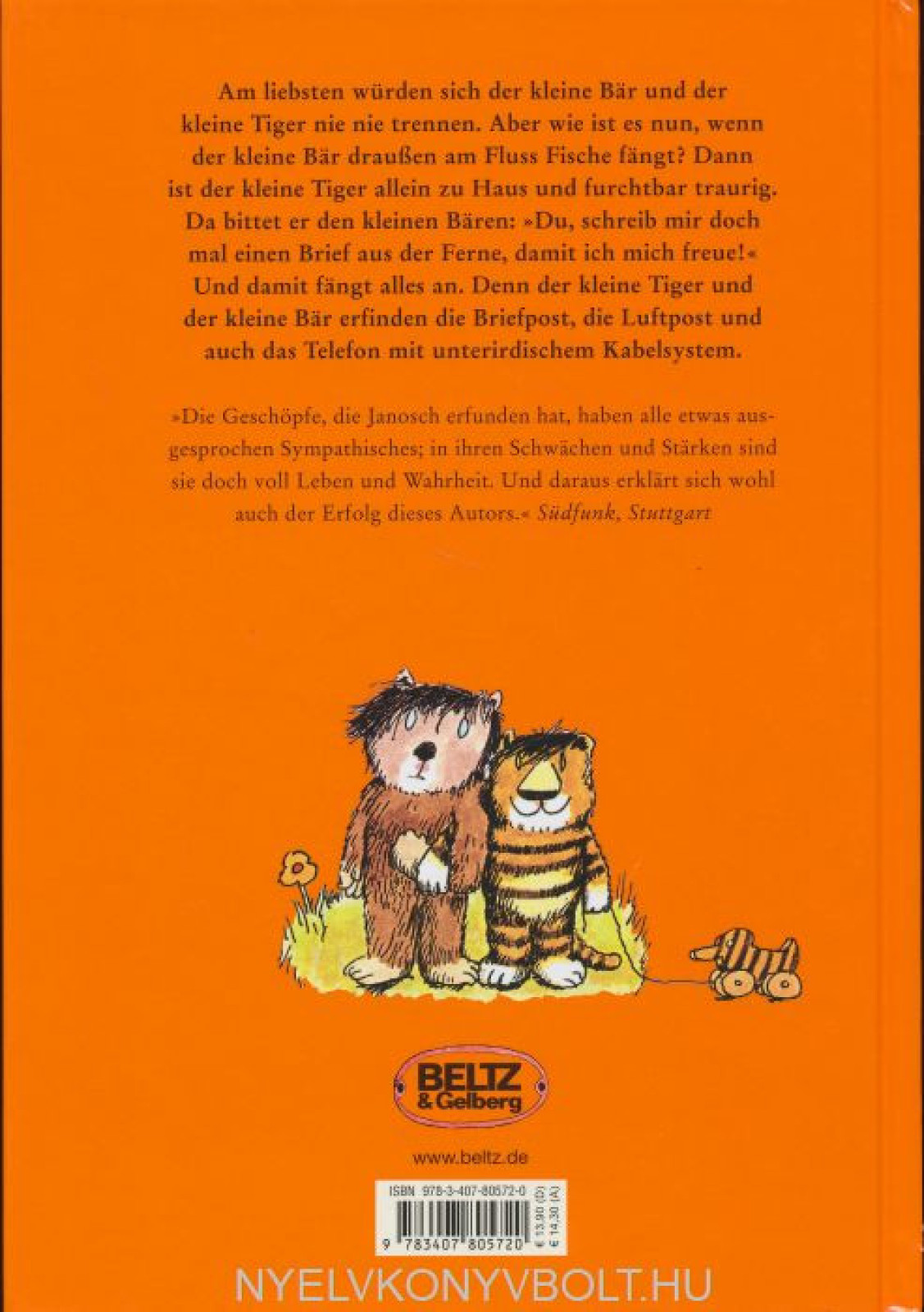 Dann ist der kleine Tiger allein zu Hause und furchtbar traurig. Da bittet er den kleinen Bären: Du, schreib mir doch mal einen Brief aus der Ferne, damit ich mich freue! Und damit fängt alles an; denn der kleine Tiger und der kleine Bär erfinden die Briefpost, die Luftpost und auch das Telefon mit unterirdischem Kabelsystem.