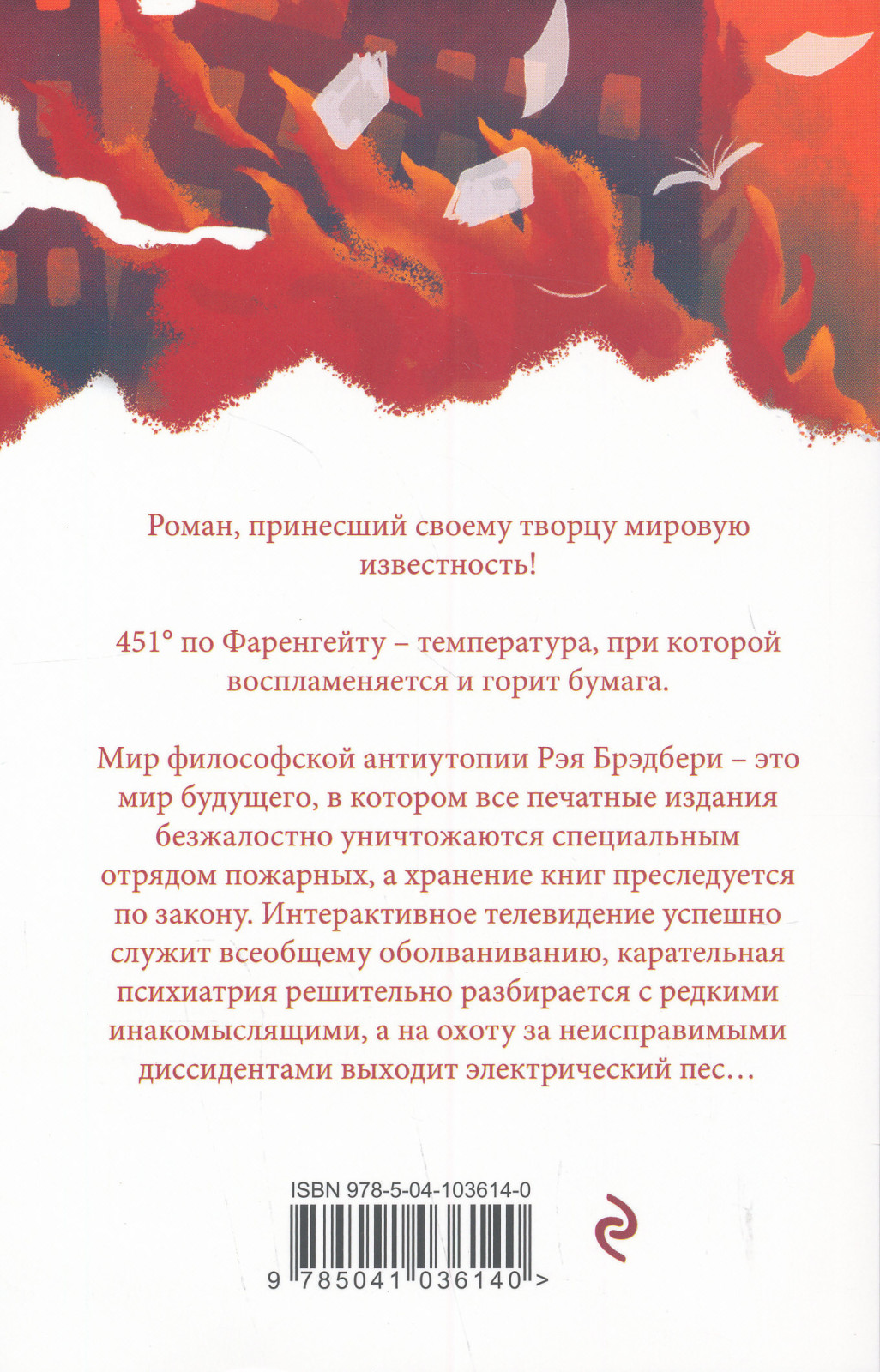 Filosofskaja antiutopija Bredberi risuet besprosvetnuju kartinu razvitija postindustrialnogo obschestva: eto mir buduschego, v kotorom vse pismennye izdanija bezzhalostno unichtozhajutsja spetsialnym otrjadom pozharnykh, a khranenie knig presleduetsja po zakonu, interaktivnoe televidenie uspeshno sluzhit vseobschemu obolvanivaniju, karatelnaja psikhiatrija reshitelno razbiraetsja s redkimi inakomysljaschimi, a na okhotu za neispravimymi dissidentami vykhodit elektricheskij pes... Roman, prinesshij svoemu tvortsu mirovuju izvestnost.